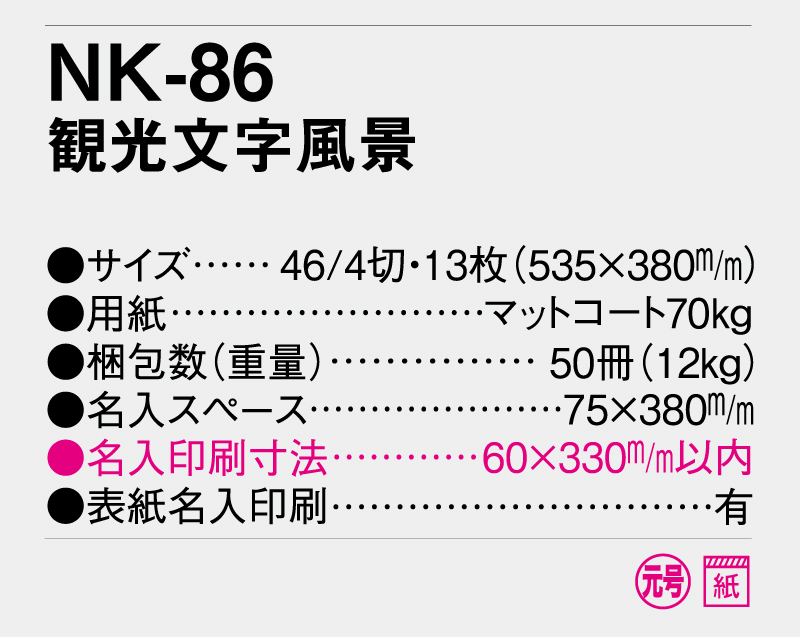 2026年 NK-86 観光文字風景【壁掛けカレンダー】【名入れ印刷 無印50部から】