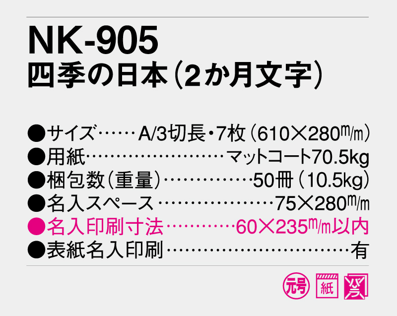 2026年 NK-905 四季の日本(2か月文字) 【壁掛けカレンダー】【名入れ印刷 無印50部から】