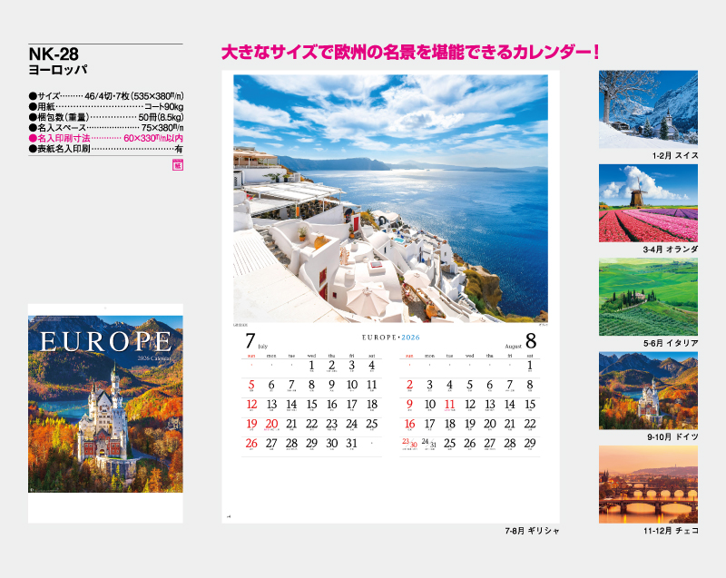 2026年 NK-28 ヨーロッパ【壁掛けカレンダー】【名入れ印刷 無印50部から】