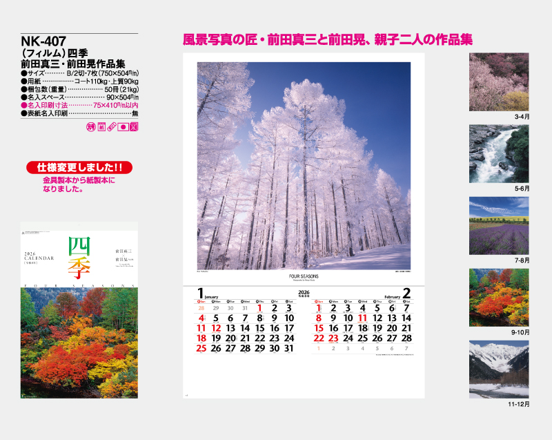 2026年 NK-407 (フィルム)四季 前田真三・前田晃作品集【壁掛けフィルムカレンダー】【名入れ印刷 無印50部から】