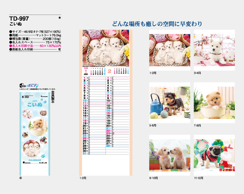 2026年 TD-997 こいぬ【壁掛けカレンダー】【名入れ印刷 無印50部から】
