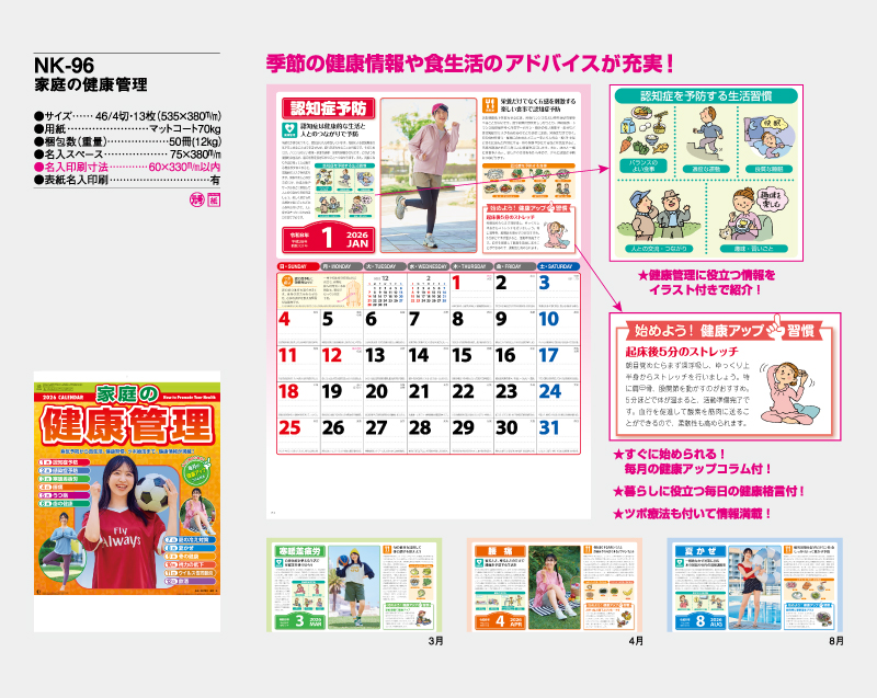 2026年 NK-96 家庭の健康管理【壁掛けカレンダー】【名入れ印刷 無印50部から】