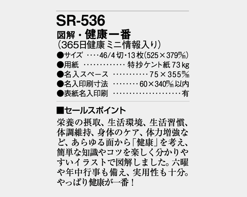 2026年 SR-536 図解・健康一番(365日健康ミニ情報入り)【壁掛けカレンダー】【名入れ印刷 無印50部から】