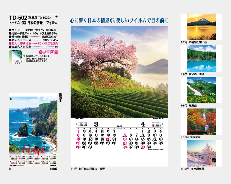 2026年 TD-502 トーハン・DX 日本の情景 フイルム【10部から名入れ対応 壁掛けカレンダー】
