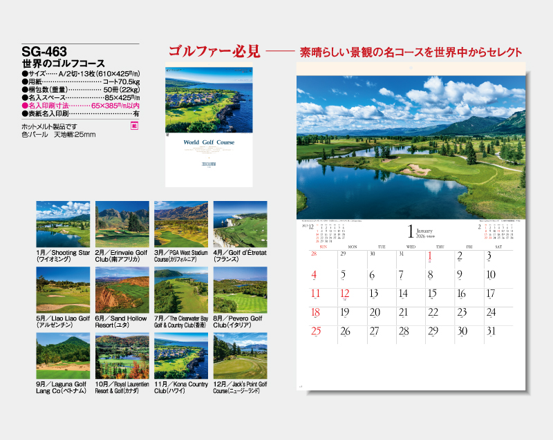 2026年 SG-463 世界のゴルフコース【10部から名入れ対応】【壁掛けカレンダー】