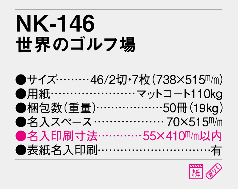 2026年 NK-146 世界のゴルフ場【10部から名入れ対応】【壁掛けカレンダー】
