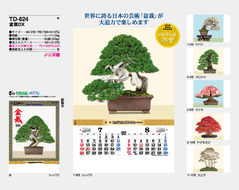 2026年 TD-624 盆栽DX【壁掛けカレンダー】【名入れ印刷50部から】